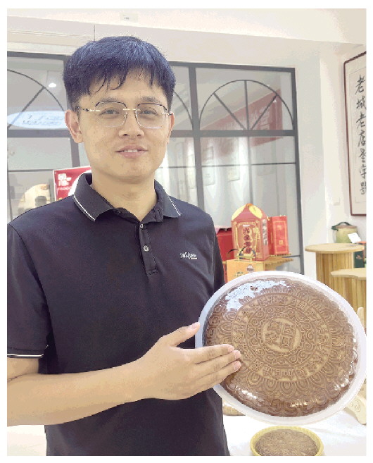 刘鑫展示月饼产品。