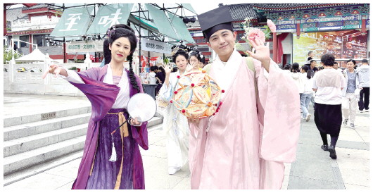 国庆、中秋双节期间,城区十笏园文化街区的“万笏新叙”活动热闹上演。当古韵街区嵌入潮玩IP、青砖灰瓦遇上国风国潮,一场多维度、沉浸式的假日生活新体验,让游客乐在其中。本报记者 刘晓杰 通讯员 刘超 郝培茹