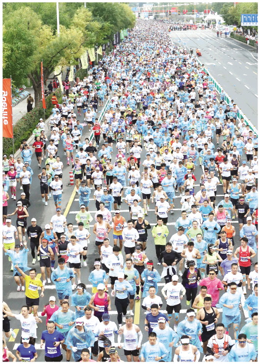 10月19日,马拉松参赛选手正在进行比赛。当日,“好运山东”歌尔·2025潍坊马拉松暨山东省马拉松联赛(潍坊站)举行。本次赛事以“畅跑风筝之都 悦动更好潍坊”为主题,是中国田径协会认证的A1类赛事。本次赛事组织志愿者积极参与各项服务,并同步举办一系列丰富多彩的文化、旅游、商贸活动,让广大跑友深度感受潍坊城市魅力。 本报记者 张驰