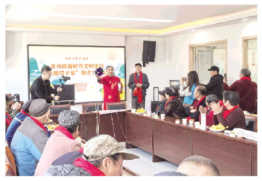 本报讯(记者 刘蒙亮)10月24日上午,由青州市文明办等发起的“我们的节日·重阳”新时代文明实践“桑榆饺子宴”活动在益都街道旗城社区“长者乐堂”温情开席,为70岁以上老人精心准备了热气腾腾的饺子、糕点等美食,带来一场集文化体验与暖心服务于一体的重阳盛宴。当天,50余位老人欢聚一堂,同庆重阳,共话邻里情(上图)。