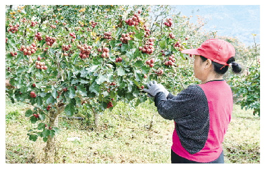 村民正在采摘山楂。