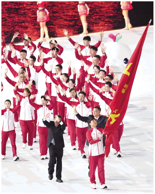 11月9日,山东省体育代表团在入场仪式上。当日,第十五届全国运动会开幕式在广东奥林匹克体育中心举行。 新华社发