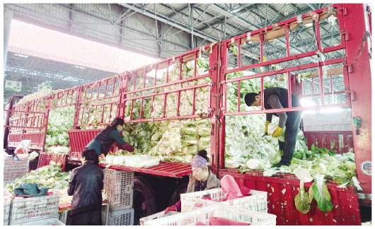 11月6日,在寿光地利农产品物流园交易大厅内,工人们忙着对来自东北的大白菜进行分拣包装,然后发往全国各地。当天记者了解到,随着天气转冷,本地和来自东北、内蒙古等地的大白菜成为市场交易主角。 本报记者 孙希明