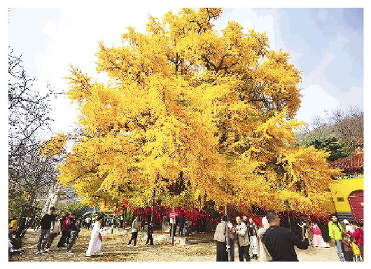 近日,在位于安丘市石埠子镇的城顶山上,一场华丽的视觉盛宴如约绽放。两棵2500年树龄的雄雌银杏树,恰似披了金甲的故人,巍巍然擎着金灿灿的华盖,将秋的华章写满晴空,令纷至沓来的游客大饱眼福,不虚此行。 城顶山景区的工作人员孙业华介绍,仅11月9日一天,前来观看银杏树的游客就超过2000人。如果没有极端天气,最佳观赏期能持续10天以上。 本报记者 王玉芳