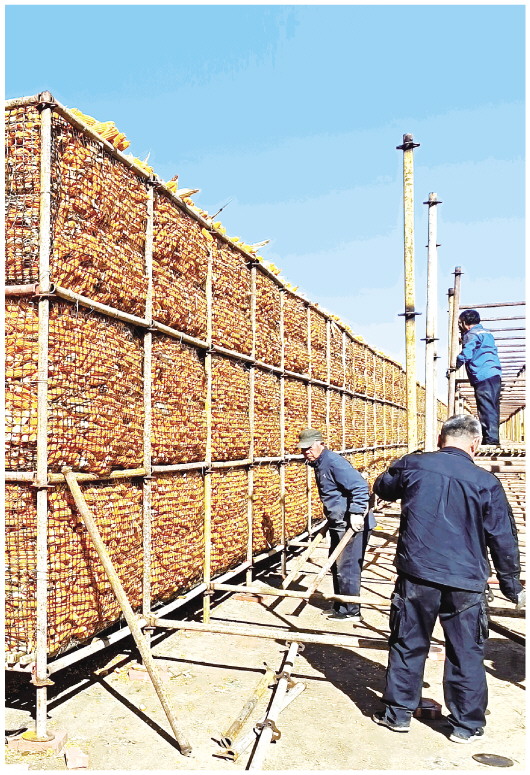 11月9日,安丘市金冢子镇金冢子村的农户正忙着搭建粮仓。当日,记者在金冢子村储粮场看到,一座座长80米、宽1.2米、高3米的“玉米楼”连成排,装满了金灿灿的玉米棒仿佛一道道金黄巨墙。“这些‘玉米楼’就是科学储粮仓,每座可容纳20多万斤带棒玉米,7座共存放着合作社收获的近150万斤玉米。”金冢子镇金中社区书记李正晨介绍,该储粮仓专为解决大量玉米储存难题,通风降温,规避霉变风险。 本报记者 王玉芳 通讯员 宋鑫