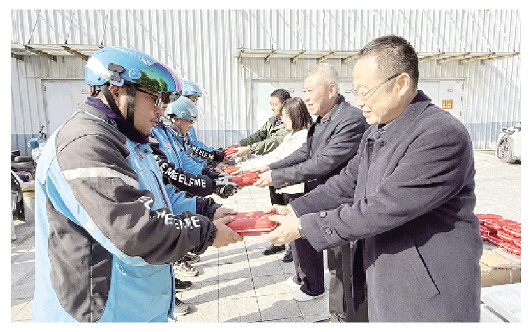 11月16日,奎文区大虞街道陈家社区开展了关爱新业态劳动者专项活动,为外卖配送员、快递员、网约车司机等户外劳动者送上爱心急救包等暖冬慰问品,让他们感受到浓浓暖意。