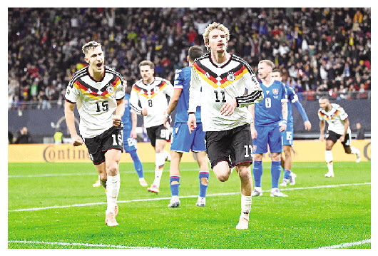 据新华社柏林11月17日电 2026美加墨世界杯预选赛欧洲区第一阶段小组赛17日继续收官轮的争夺,德国队在主场以一场酣畅淋漓的6∶0大胜完成对斯洛伐克队的复仇,同时顺利晋级决赛圈(上图)。