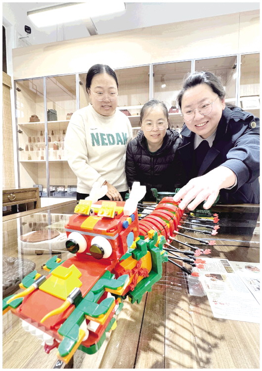 11月19日,在陈介祺金石博物馆,一件件用积木拼成的潍坊文创作品吸引了市民目光。龙头蜈蚣风筝、毛公鼎、编钟等积木文创作品让传统文化以更生动、更直观的方式展现出来,满足了大众体验动手的乐趣和对本土文创作品的情感共鸣。 本报记者 张驰