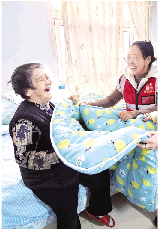 11月20日,在潍城区城关街道曹家巷社区,居民领到崭新的棉被开心得合不拢嘴。随着冬季的到来,当日,该社区开展了一场“社区让爱加‘被’ 这个冬天很温暖”活动,为社区的困难居民送去棉被等暖冬物资,让他们感受到社区大家庭的关爱,能够温暖、快乐过冬。 本报记者 张驰