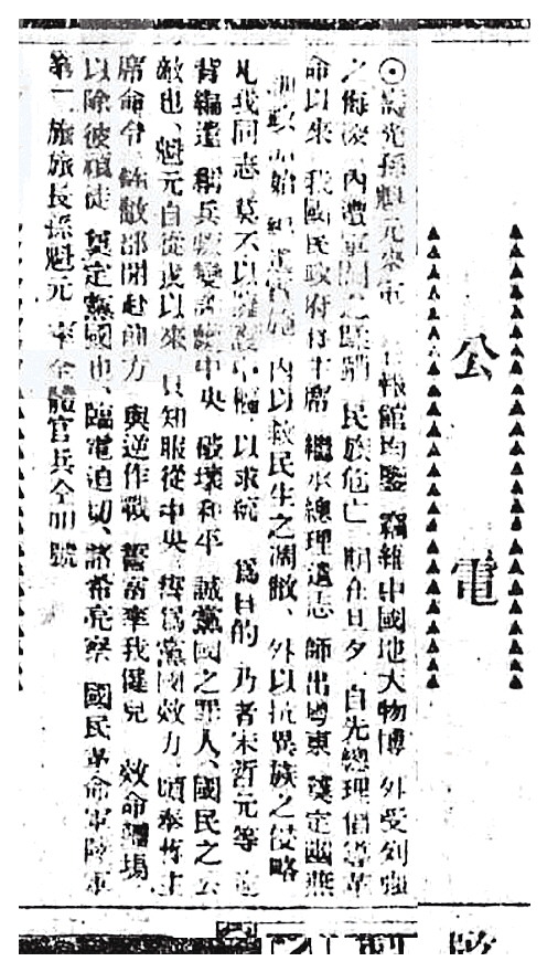 孙殿英 1929年4月13日《申报》报道 1929年10月21日《申报》刊载孙魁元(孙殿英)电文。 1928年至1929年,军阀张宗昌部、被蒋介石收编的孙殿英部轮番占据羊角沟,或强征兵夫,甚至招募海匪,或逼索军费,敲诈勒索。兵扰匪祸,羊角沟商民苦不堪言。军阀残部驻扎 羊角沟几成土匪世界 1928年4月,国民革命军第二次北伐,进入山东。5月1日,直鲁联军总司令张宗昌弃城北逃,北伐军攻克济南。日本以“护侨”为名悍然出兵,制造了“济南惨案”(又称“五三惨案”)。 此时的山东,日军占据济南,国民党山东省政府偏居泰安,胶东一带为直鲁联军一部及各种杂牌军盘踞。张宗昌委任的寿光县县长贾月印携款潜逃,被蒋介石收编的鲁东民军司令刘荆山占领寿光县城。一个月后,直鲁联军第三军第二十六师师长黄凤岐率残部进占寿光县城,委任徐忠杰为县长,强征军费19万元。 史料记载,黄凤岐派兵一营驻扎羊角沟,“招募海匪”,“因之无数匪徒荷枪实弹,络绎而来”,羊角沟“几成一匪世界”。“各商家均闭门潜踪藏之,唯恐不密”,哪里还顾及商业经营。驻军强征,土匪绑票,散兵逼款,民不堪命,包括羊角沟周围在内的寿光北部各村庄,纷纷组织红枪会,与散兵、土匪对抗,保家护院。 1929年2月27日,驻县城的黄凤岐部与县人民自卫团发生冲突,民团溃败。黄凤岐部向东、北两个方向追击,沿路屠村。东路几至县境,北路临近羊角沟,屠村七八十处,死人万余,当地民团全部瓦解。 此时,张宗昌从大连回到山东,在龙口登陆,召集旧部,妄图收复胶东。驻扎烟台的刘珍年系张宗昌的老部下,被蒋介石收编为暂编第一军军长兼第一师师长。张、刘开战,蒋介石令新编独立第二旅旅长孙殿英协同第四十九师师长任应岐,东开讨伐张宗昌,孙殿英又被鲁东善后维持委员会推举为鲁东民团军总司令。孙殿英部沿小清河南岸、胶济铁路两侧东进,任应岐部沿小清河北岸东击。3月10日,孙殿英部2000人马开抵寿光,要求黄凤岐出面4万斤、小米2万斤、现洋5万元。黄自知势力不敌,当即应允。孙殿英又令在县城四关和近城村庄预备两万驻军房舍,黄凤岐不允,在城内备战,羊角沟驻军亦陷入恐慌。借口经费无着 孙殿英屡次延宕开拔 3月17日,孙殿英先头部队到达黄县。4月10日,任应岐前锋抵达羊角沟。三天后,黄凤岐率部撤逃,孙殿英一部攻克寿光县城。随后,孙殿英拨派两个团驻扎羊角沟,任凤岐部继续东进。按照预订计划,任、孙两部会师昌邑后,任凤岐部沿烟潍路攻龙口,孙殿英部经平度莱阳攻烟台,与刘珍年合力肃清胶东。 4月底,张宗昌败走大连,任应岐部主力进至龙口,一部留驻寿光县城;孙殿英部仍在胶济路中段一带。5月12日,留驻寿光的任应岐部旅长颜芝兰派一个营驰援广饶。中午时分,杂牌军张志诚乘虚袭攻寿光。据颜芝兰称,孙殿英旅督战队800多人竟作内应,城被攻陷。五天后,张志诚弃城逃走,孙殿英部进驻。任应岐致电蒋介石,“寿光失守,系孙殿英之督战队,作张匪志诚内应”“其从前归顺中央,可见并非诚意”。蒋介石命孙殿英开赴皖北,孙殿英拒绝执行。任应岐与刘珍年会商胶东善后时称,孙殿英4月中旬克复寿光,系“卖友立功”,因为起先占据寿光的黄凤岐即是孙殿英旧部,“孙到开城,即算占领”。 蒋介石暂时没有追究孙殿英。孙殿英留驻寿光及羊角沟的部队,敲诈勒索,为害甚烈。《申报》报道:“驻寿光之孙殿英部,亦到处勒索给养,又勒收验枪、户口等捐,骚扰情形,为各军最。” 这年秋,蒋介石令孙殿英部调防豫东,其部下“闻之异常恐慌”,孙殿英本人“亦局促不安”。孙殿英部队驻寿光、昌乐、广饶各县,他立即调整军队部署,在寿光至羊角沟一线,“密布军队,以防万一”,同时准备将主力部队转移桓台,将以前没收的造炮机器运至桓台。 蒋介石原令孙殿英部9月24日开拔,孙殿英称开拔经费无着,要求延至28日,后又要求改为10月5日。津浦、胶济两路局奉命调车四辆,开至昌乐,接运孙殿英部。孙殿英又以山东省政府拨给开拔经费3万元“杯水车薪,无济于事”为由,提出“辞职”。10月5日,孙殿英离开旅司令部驻地寿光县城,赴羊角沟上船,“转往大连”。孙殿英部占据半载当地百姓商家遭殃 孙殿英赴大连,并没有与其僚属通气,到了羊角沟后,才给副旅长金尊华写信,称“奉令调防,本应即日开拔,但部下共三万人,省政府只拨到三万元,实系不敷分配,群众索饷,无法应付,恐上无以对国家,下无以对人民,更无以对部下,故个人情愿辞职”。他将第二旅事务交付金尊华与政治训练处处长梅伯寅,“静候中央处置”。 金尊华接函后,与梅伯寅商议,自己赴济南请示山东省主席陈调元,梅伯寅则赶往南京向中央报告。金尊华来到济南,陈调元称,第二旅系中央军队,须电中央请示办法,随即派赵经世赴南京汇报。梅伯寅赶往南京的同时,致电北平行营主任何成濬报告。 孙殿英言称赴大连,却以休养为名,蛰居羊角沟,观望大势。10月12日,寿光商民代表苏书声、李竹村、王庆善赴济南请愿,反映近半月内,寿光被孙殿英部勒征现洋5万元、米面18万斤、高粱20万斤、柴草50万斤,请催“速其开拔,以苏民困”。第四十六师师长范熙绩将部队集中潍县、青州、周村,防范有变,自己赴济请示陈调元。 此时,孙殿英部驻寿光约1.5万人,驻广饶约8000人,驻昌乐约5000人,驻桓台约700人。有消息称,孙部主力欲向博兴、羊角沟移动。10月19日,金尊