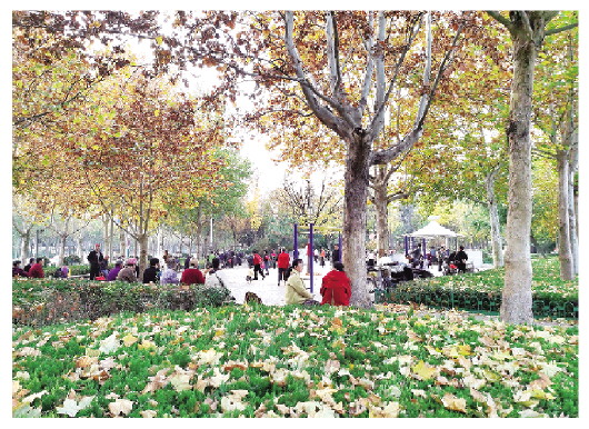 长势茂盛的各类苗木,是公园里一道独特的风景。这里的苗木以苦楝树为主。二十四番花信风始于梅花,终于楝花。苦楝花开后,春芳暂歇,绿叶郁郁,意味着春天即将结束,所以此园取如沐春风之意,命名为“沐春园”。现在已是冬季,公园里落叶纷纷,景色略显萧瑟,但围坐在这里休闲、玩牌、下棋、聊天的市民,却上演了一出潍坊人原汁原味的幸福生活大剧。