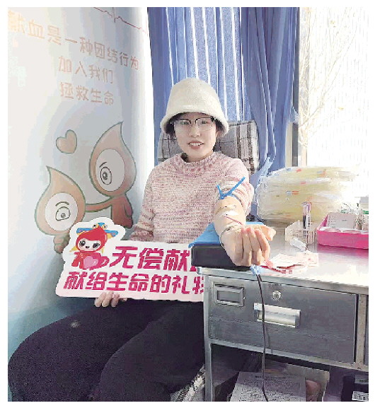 在人群中,头戴白色帽子、身材高挑的郭晓洁格外醒目,她俏皮地拿起手举牌,让镜头定格了这个值得纪念的瞬间。“第一次献血是出于好奇,当时还有点紧张,现在轻松多了。”郭晓洁说。
