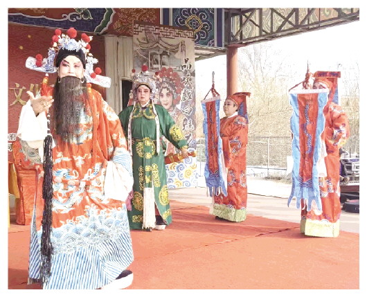 演员们身着传统戏服,脸上化着精致的戏剧妆容,以婉转悠扬的唱腔表现人物心境,用细腻生动的招式演绎剧情起伏,将剧中人物的悲欢离合展现得淋漓尽致(下图)。台下,戏曲爱好者或搬来小板凳静坐观看,或站在人群中踮脚凝望,每当剧情推进到关键处,现场便响起阵阵掌声与喝彩声,不少老戏迷更是跟着曲调轻轻哼唱,沉浸其中。