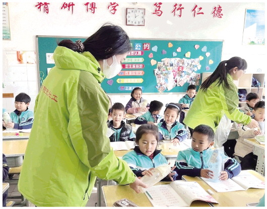 连日来,诸城市阳光社会工作服务发展中心志愿者在深圳壹基金公益基金会支持下,先后来到诸城市4所乡村中小学,为学生们送去3192个儿童水杯。据悉,这批水杯共五种颜色,面向学生免费发放。孩子们拥有了安全卫生的饮水器具,非常开心。图为志愿者进校园为学生发放新水杯。 本报记者 刘晓梅