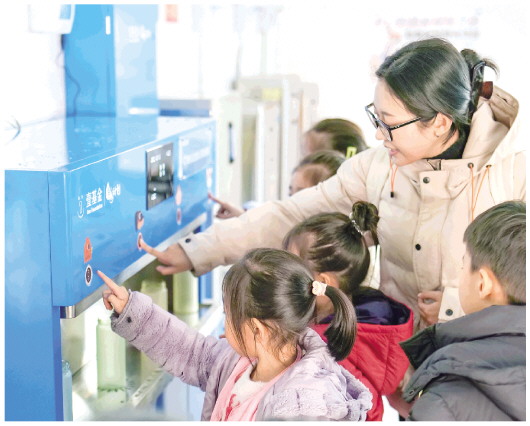 12月16日,潍坊市鸢都义工公益服务中心在高密市、昌乐县、临朐县的9所乡村小学开展壹基金“净水计划”项目,共安装了总价值50余万元的净水设备。志愿者还在学校开展了水与卫生健康课堂活动,提高了学生对饮水安全的认知。图为学生正在学习使用净水设备。 本报记者 张驰
