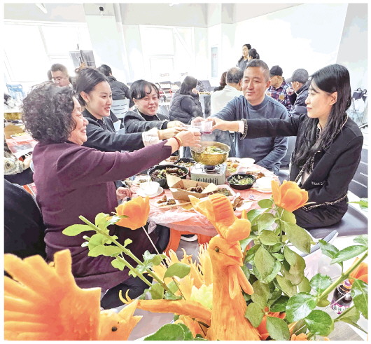 12月18日,一场“邻里宴”活动在奎文区东关街道李家街社区举行。红烧肉、糖醋里脊、四喜丸子、烤肉串等一道道精心烹制的家常菜肴香气四溢,居民们围坐在一起,一边品尝着美食,一边唠着家常,交流着厨艺,畅谈着生活点滴,彼此的距离悄然拉近。 本报记者 张驰