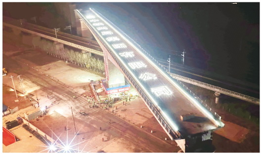 潍宿高铁首个跨高速铁路转体梁成功转体