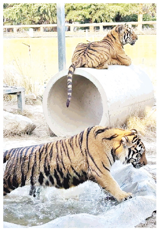 老虎户外冷水浴 神清气爽惹人爱