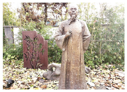 听竹园位于城市街角,外侧有一面造型古朴的景观墙,墙边种着竹子,竹子一侧写着“听竹园”字样。从景观墙一侧的台阶迈入公园,入目是一座郑板桥雕塑(上图)。郑板桥雕塑一手拿着笔,另外一只手背在身后,双目炯炯有神地望向前方,目光中仿佛透出对民生疾苦的关切,非常生动传神。顺着他的目光看去,恰好能看到题在景观墙背面的“衙斋卧听萧萧竹,疑是民间疾苦声。些小吾曹州县吏,一枝一叶总关情”的诗句,将他无言的爱民心声传达给了每一位游人。