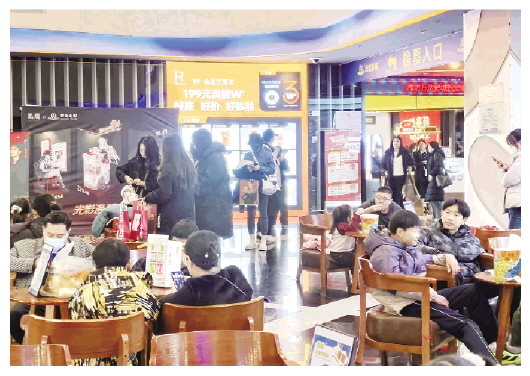 城区万达影城万达广场店,前来观影的市民络绎不绝。