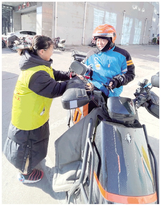 12月21日,天气寒冷,诸城市阳光社会工作服务发展中心的公益小天使、共青团诸城市委“锐青年”志愿者服务队的志愿者共同开展“冬日温情·一杯姜茶暖龙城”公益活动,志愿者将一杯杯热气腾腾的姜茶送到街头忙碌的环卫工人、外卖骑手等户外工作者手中。 本报记者 刘晓梅