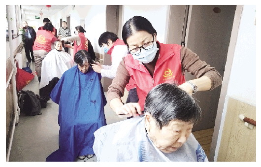 近日,潍坊尚德公益服务中心的志愿者来到奎文区安康社会福利中心开展义剪活动。志愿者在剪发前细心倾听老人的要求,随后用娴熟的手艺和真诚的服务,为20多位老人修剪出一个个精神焕发的发型。老人看着自己焕然一新的形象,脸上洋溢着幸福的笑容。 本报记者 刘晓梅