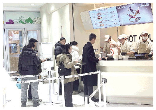 顾客在城区一家面包店排队购买。