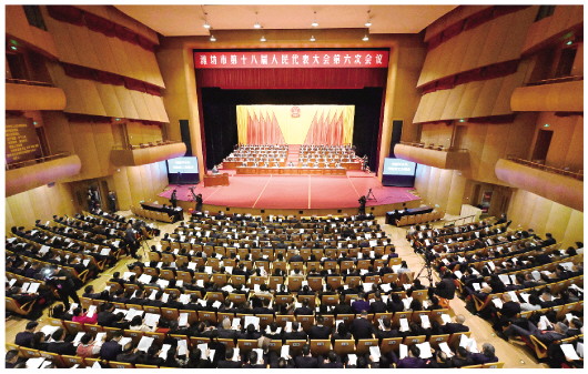 1月14日上午,潍坊市第十八届人民代表大会第六次会议在市文化艺术中心大剧院隆重开幕。 本报记者 王晓光 巩建国