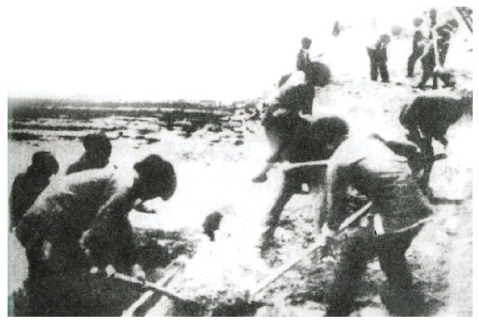 民兵在挖“抗日沟”。(资料图片)