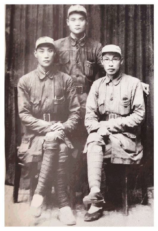宫愚公在昌潍独立营时与副营长罗平(前左)、特派员李良臣(后)的合影。
