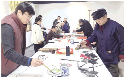 书画艺术家现场挥毫泼墨。