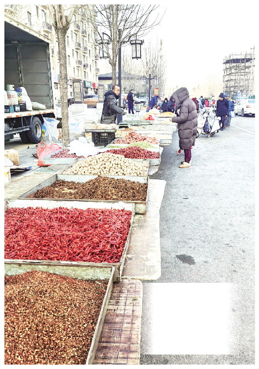 新鲜的蔬菜水果、鲜艳漂亮的服饰鞋帽,看上去就很诱人的糖果饼干、坚果炒货,各类年货摊位前购买者都是络绎不绝。人们穿梭于熙熙攘攘的大集上,精心挑选着每一样年货,感受着乡土乡情中渗透着的浓浓年味,大家手中大包小包,装满对团圆的期盼。这里的大集,不仅仅是购物的场所,更是乡情汇聚、年味氤氲的温暖港湾。眼前的一幕幕不仅承载着人们味觉的愉悦,更映照出市井生活的热闹与温情。