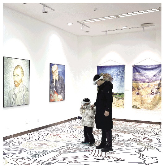 ◤市民在梵高数字互动区体验XR娱乐项目。