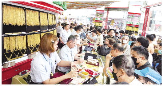 1月29日,在泰国曼谷,人们在一家金店购买黄金。 新华社发
