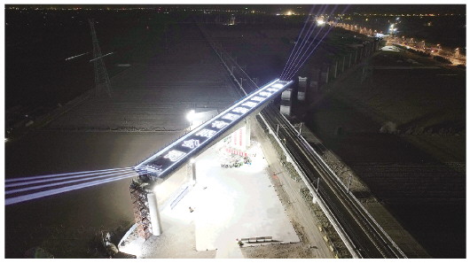 潍宿高铁跨潍荣高铁转体梁成功转体