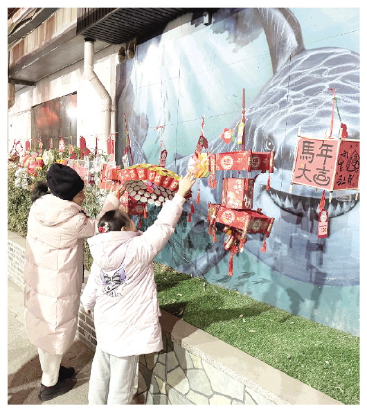 文化礼堂内,书法爱好者现场挥毫泼墨,一副副饱含祝福的春联免费赠予市民,传递着年味温情。“在家门口感受到这么浓郁的年味,既能赏花灯、看表演,又能买年货、体验非遗,太惬意了。”市民王女士笑着说。
