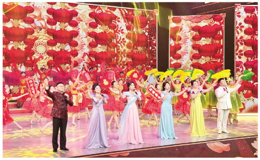 2月11日晚,由市委宣传部主办,市融媒体中心等承办的秦池·龍琬酱酒2026年潍坊市春节联欢晚会举行。晚会以“山海同春 更好潍坊”为主题,节目形式丰富多元,涵盖歌舞、小品、戏曲、情景表演等类型,为全市人民献上一场兼具年味、乡情与时代感的新春文化盛宴。图为开场歌舞《和·春风》。 本报记者 张驰