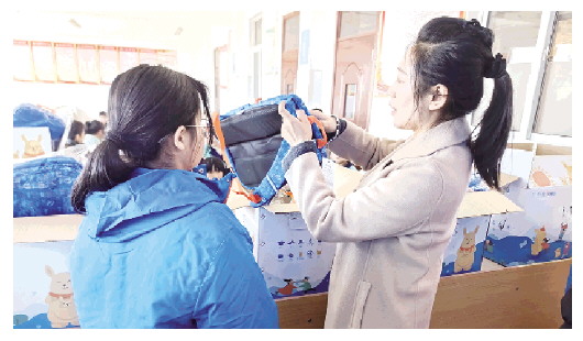 近日,共青团诸城市委、诸城市阳光社会工作服务发展中心的志愿者来到诸城市贾悦镇,为51名困境学生发放“壹基金温暖包”,让孩子们感受来自社会的关爱和温暖。 本报记者 刘晓梅