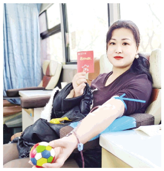 魏娜娜正在献血。
