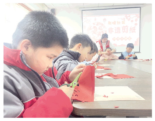 为丰富假期文化生活,2月22日,奎文区北海路街道赵疃社区开展寒假系列主题剪纸活动。活动现场,孩子们认真折叠、裁剪,从简单的纹样到别致的造型,一张张普通的红纸变成了各具特色的剪纸作品。 本报记者 王来臣 通讯员 金玉帅