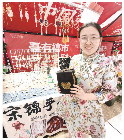 春节假期,在城区泰华新天地的“年轮好市”和吾悦广场的“吾有禧市”,“90后”潍坊姑娘赵小墨的宋锦挂饰格外引入注目,流淌着千年光阴的织锦化作挂饰、胸针、耳饰等,以全新姿态装点现代人的生活。