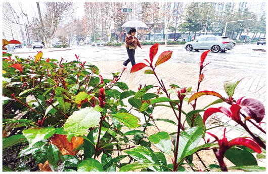 3月1日,在城区街头,行人撑伞在细雨中出行。当日,一场春雨光临城区,气温随之降低。这场春雨的到来,对净化空气以及农作物生长十分有益。 本报记者 张驰