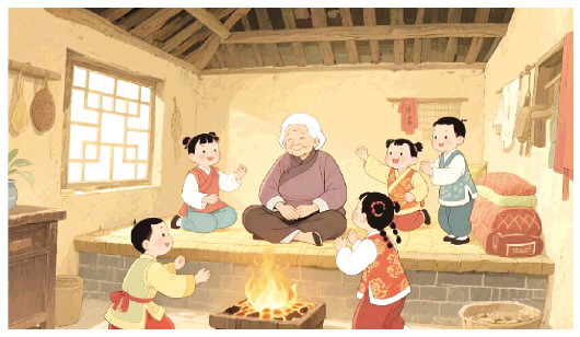 满间炕可不是谁都能坐上去的,必须是家里辈份最高的老嬷。老嬷白发苍苍,弯腰驼背,再不能拐动着小脚忙里忙外,便坐在热炕头上,任孙辈、重孙辈纷攘吵闹,享受一份天伦之乐。