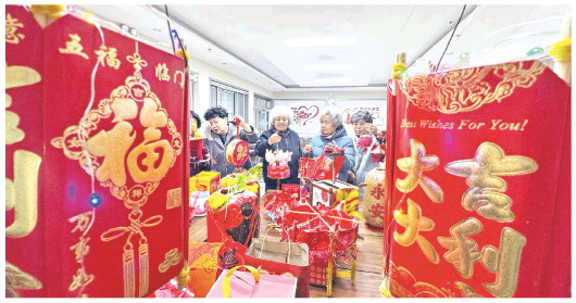 3月1日,在奎文区东关街道中和园社区,居民忙着整理刚刚制作好的环保花灯。当日,一场“废物利用制花灯”活动在该社区举行,居民利用家中的废旧纸盒、易拉罐、布料等材料,制作了50多盏造型各异的环保花灯,大家乐在其中,沉浸在浓浓的节日氛围里。 本报记者 张驰
