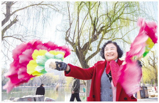 3月15日,阳光和煦,市民在自怡园里翩翩起舞,彩扇翻飞,笑迎春风。本报记者 石风华 通讯员 姜光辉