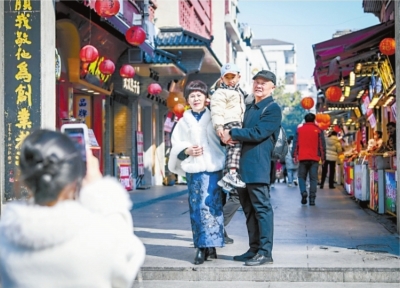 2月3日,在武昌户部巷,众多游客举家出行,“打卡”户部巷的美食。