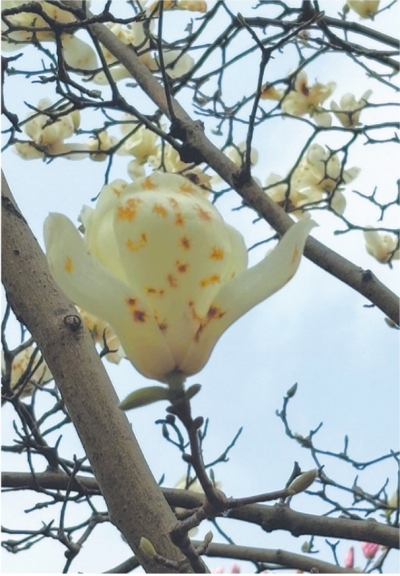 小区里玉兰花瓣长“褐斑”,是病了吗?
