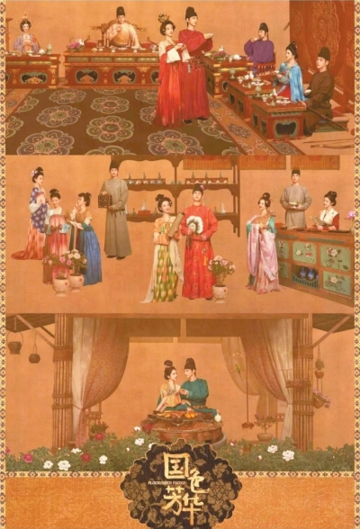 与宋代文化的雅致雍容不同,一些背景设置为唐代的影视剧,则显得豪放大度一些。比如《国色芳华》中,制香、牡丹培育,到盛唐刺绣、扇艺和唐妆等传统技艺一一亮相,全方位展现了盛唐的恢宏气象;《唐朝诡事录》匠心还原了唐朝的服装和配饰,人物所配的刀剑也按照唐朝横刀的样式制作,以小成本撬动了上佳的视觉效果;《妖猫传》从杨贵妃与唐明皇的爱情入手,试图用一晚“大唐极乐夜”还原大唐盛世的瑰丽梦幻;《长安十二时辰》从天宝三载的某一天入手,用“长安最长的一天”这把刀,切开大唐盛世的一个横截面,带领观众见证了中国传统文化的悠远意境和精神品格。这些表现手法把中华传统美学韵味融入视听符号中,落实到作品的场景设计、服装造型和镜头运用上,营造沉浸式审美意境,与观众建立起紧密的情感联结与审美呼应。