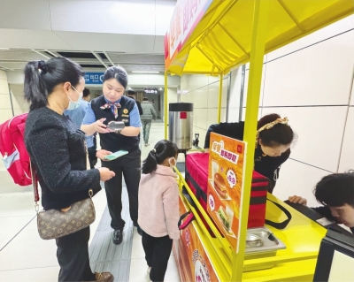“很方便呀!我下地铁买了早餐就直接去公司,吃的时候还是热的。”乘客马女士对记者说,站外买早餐还是要走一段路,现在出站顺便买份早餐,对于早上时间很赶的上班族来说非常便捷。记者看到,购买早餐的乘客既有年轻人、带孩子的家长,也有年长者。