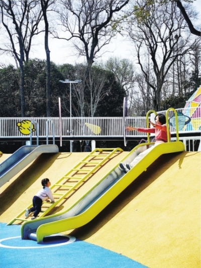 记者了解到,儿童游乐园设置有滑滑梯、跷跷板、攀爬墙、攀爬网、攀岩点、秋千、转椅、钻洞、钻桶、沙坑等。沙坑内还配置了3个挖沙机。游乐园地面铺装了彩色塑胶,使孩子们玩起来更安全。